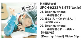 Dear・・は今までにないほど爽やかな疾走感あふれる(本人いわく汗臭い)ラブソング。ロードムービーDVDもまぶしい感じです。仔雅あてに書かれています。スカイダイビングしてるんだけど、雅危うく事故に巻き込まれるところでした。洒落になんなかったです。